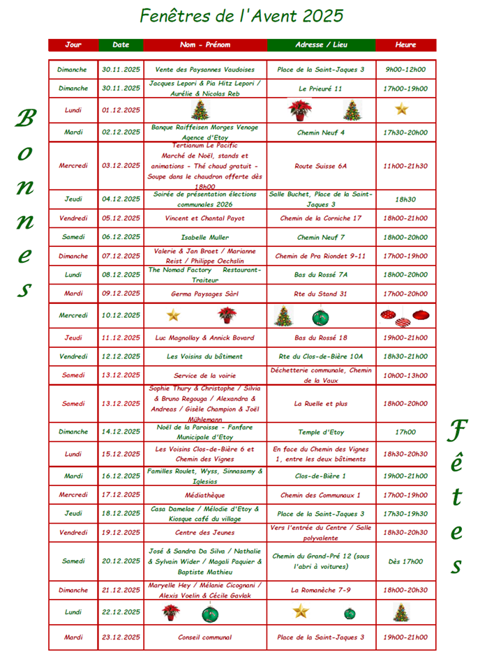 Nous vous remercions pour votre participation et serions ravies de vous accueillir nombreux à la soirée villageoise du 23 décembre 2025.
